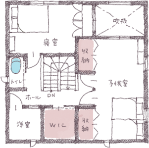 収納スペースを設けるだけでなく、家づくりの段階で収納したいモノ・収納したい場所を