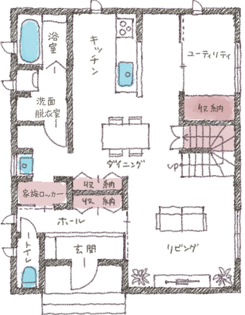 「家族みんなで協力しやすい」ことにつながります。日々の家事は、工夫次第で大幅減となるのです。